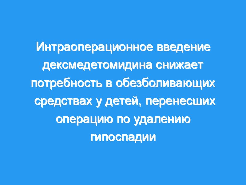 Внутривенное введение дексмедетомидина интраоперационно во время коррекции гипоспадии у детей снижает потребность в интраоперационном и послеоперационном обезболивании и снижает частоту сердечных сокращений и артериальное давление.
