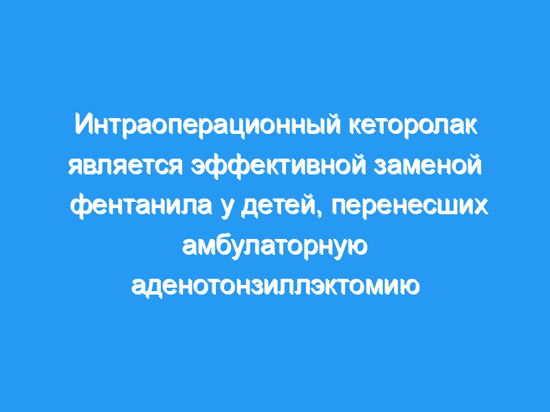 Пятьдесят семь детей с ASA I и II в возрасте 1710 лет, перенесших ADLAT, были рандомизированы для получения либо внутривенного введения кеторолака (1 mg.kg (-1)) или фентанил (2 microg.kg (-1)) для контроля боли во время стандартной общей анестезии с инфузией пропофола. Ранний (отделение послеоперационной помощи, дневная хирургическая зона) и поздний послеоперационные курсы сравнивались между группами.
