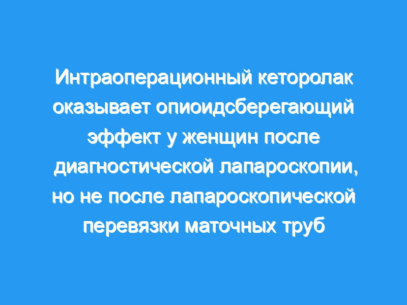 Обследованные пациенты были взрослыми женщинами с физическим статусом ASA I или II, которым была назначена диагностическая лапароскопия (DL) (n = 80) или лапароскопическая перевязка маточных труб (TL) (n = 46). Каждый пациент получал фентанил 2 мкг/кг внутривенно (внутривенно) перед индукцией, затем стандартный анестетик пропофол и 2 мл физиологического раствора или кеторолак 60 мг внутривенно.