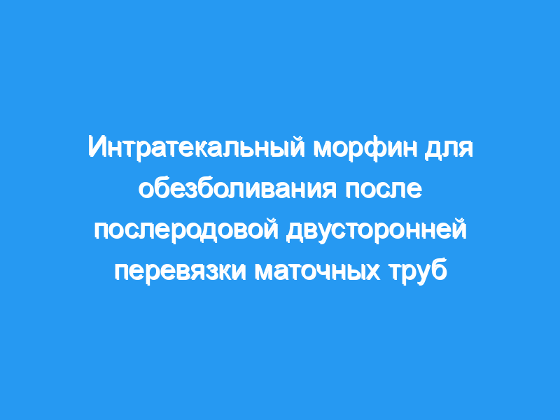Мы пришли к выводу, что добавление 50 мкг морфина к интратекальному гипербарическому бупивакаину и фентанилу обеспечивает улучшенную послеоперационную анальгезию у женщин, перенесших PPBTL.