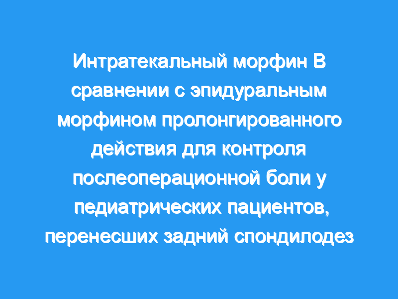 Задний спондилодез при сколиозе — одна из самых болезненных плановых операций у детей. Хороший контроль послеоперационной боли позволяет на ранних стадиях восстановиться и восстановить способность переносить пероральный прием. Варианты обезболивания в этой популяции пациентов являются неоптимальными. Мы предположили, что эпидуральный морфин с пролонгированным высвобождением (EREM) обеспечит лучший контроль боли и меньшие побочные эффекты по сравнению с интратекальным морфином (IT).