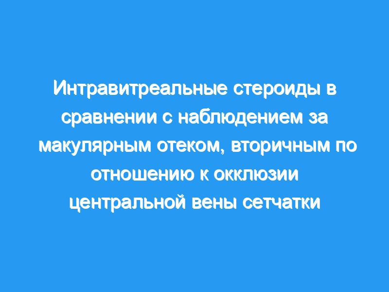 Окклюзия центральной вены сетчатки (ЦРВО) — распространенная сосудистая аномалия сетчатки, связанная с такими состояниями, как гипертония, диабет, глаукома и широкий спектр гематологических заболеваний. Макулярный отек (ME) представляет собой важное осложнение CRVO, угрожающее зрению. Интравитреальные стероиды (в/в), такие как ацетонид триамцинолона, использовались для лечения макулярного отека различной этиологии и могут быть вариантом лечения CRVO-ME.