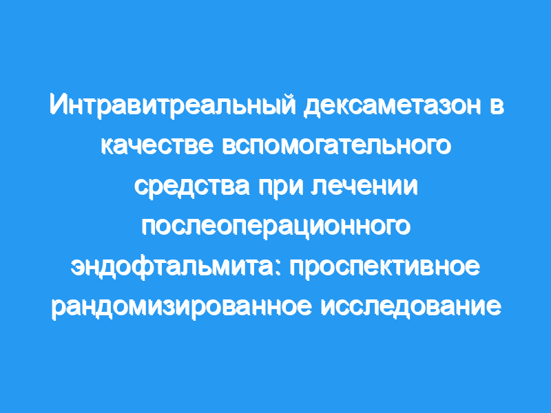 Изучить, улучшает ли интравитреальный дексаметазон в качестве адъюванта к интравитреальным антибиотикам исход у пациентов с подозрением на послеоперационный бактериальный эндофтальмит. Дизайн: Проспективное рандомизированное клиническое исследование.