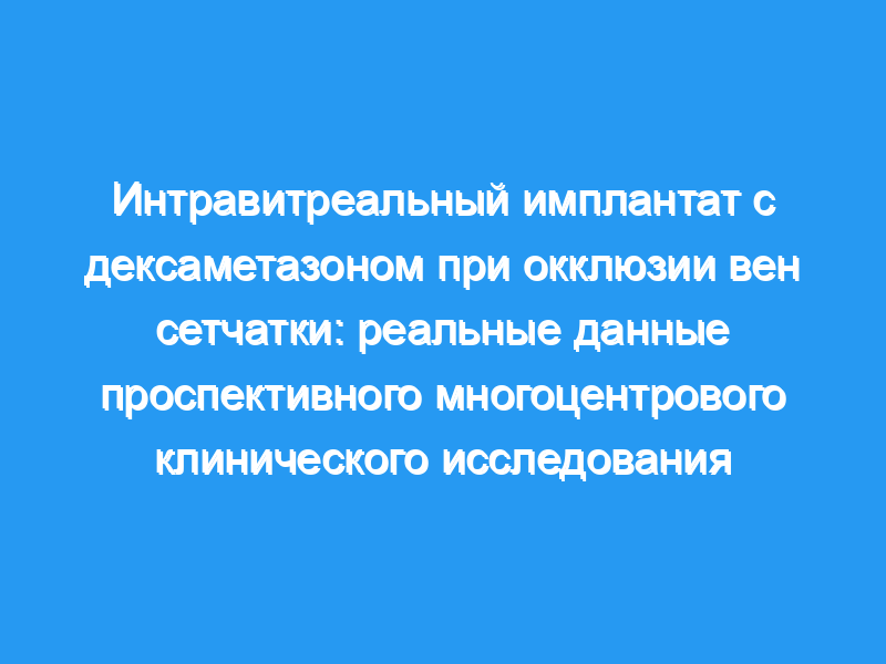 Анализируемая популяция состояла из 573 пациентов (64 % BRVO, 36 % CRVO). Пациенты получили в среднем 1,17 процедуры имплантации DEX в течение периода исследования, 84,3 % пациентов получили один имплантат DEX и 19,9 % получили дополнительное другое лечение RVO. Среди пациентов с анализируемыми данными BCVA на исходном уровне и на 12-й неделе (n = 351) среднее изменение по сравнению с исходным BCVA на 12-й неделе составило -0,16 (стандартное отклонение 0,30) LogMAR (+7,8 приблизительное раннее лечение в исследовании диабетической ретинопатии [ETDRS] letters) (p <, 0,001), и 33,9 % пациенты набрали по крайней мере 3 строки BCVA по сравнению с исходным уровнем. Среднее изменение по сравнению с исходным уровнем BCVA на 12-й неделе составило +9,5, +7,3 и +5,4 приблизительных букв ETDRS у пациентов с длительностью макулярного отека <, 90 дней, от 90 до 180 дней и >, 180 дней соответственно. Улучшение показателей BCVA на 24-й неделе и уменьшение центральной толщины сетчатки наблюдались как у BRVO, так и у CRVO. Наиболее распространенной побочной лекарственной реакцией было повышение внутриглазного давления. Никаких операций по удалению глаукомы не требовалось.