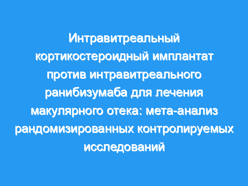 Целью данного мета-анализа было сравнение эффективности и безопасности кортикостероидного имплантата и интравитреального введения ранибизумаба для лечения макулярного отека (МЭ).