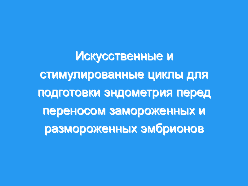 Стимулированные циклы имели более высокую частоту истончения эндометрия (27% против 5%, P <, 0,01). В искусственных циклах у пациенток, перешедших на вагинальный эстрадиол, частота наступления беременности улучшилась (31%) по сравнению с пациентками, получавшими только пероральный эстрадиол (13%) (Р = 0,05). Сделан вывод, что искусственные и стимулированные циклы приводят к сопоставимым показателям беременности, имплантации, отмены и толщины эндометрия, хотя стимулированные циклы имеют более высокую частоту истончения эндометрия.