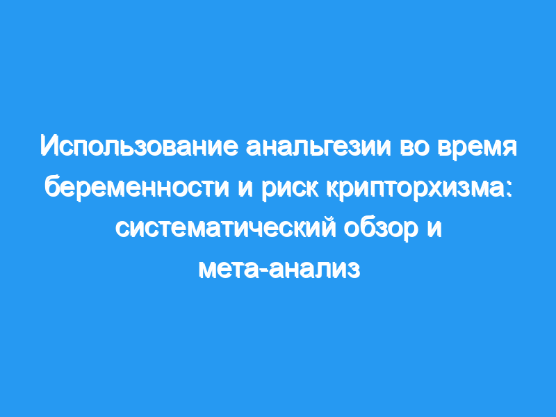 Вопрос исследования: Подвержены ли мальчики, рожденные от матерей, которые принимают анальгетики во время беременности, повышенному риску крипторхизма по сравнению с мальчиками, рожденными от матерей, которые не принимают анальгетики? Краткий ответ: В этом систематическом обзоре и мета-анализе 10 опубликованных исследований мы обнаружили лишь слабые доказательства связи между использованием анальгезии во время беременности и риском крипторхизма у беременных.