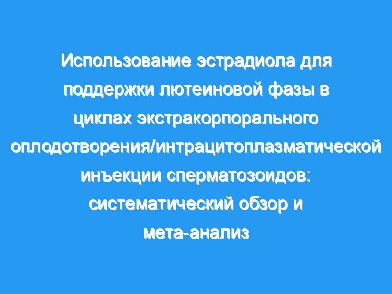 Изучить влияние добавок лютеина Е(2) на частоту наступления беременности в циклах ЭКО/интрацитоплазматической инъекции сперматозоидов (ИКСИ). Дизайн: Систематический обзор и мета-анализ всех рандомизированных контролируемых исследований (РКИ).