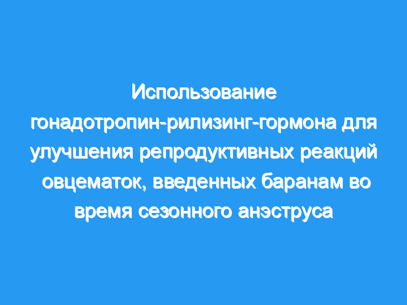 В заключение, лечение GnRH 4d перед введением барана показало перспективность в качестве альтернативы лечению P(4) для улучшения овуляторной реакции и репродуктивных показателей овцематок, введенных барану во время сезонного анэструса.
