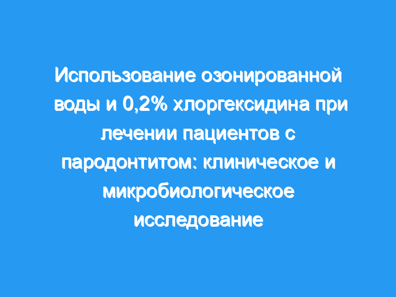 Было проведено рандомизированное двойное слепое перекрестное исследование с раздельным ртом. Для исследования было отобрано в общей сложности 16 пациентов, страдающих генерализованным хроническим периодонтитом. Период исследования в 18 дней был разделен на два временных интервала, т.е. от исходного уровня (0 дней) до 7-го дня, с периодом вымывания в 4 дня, за которым следует второй временной интервал в 7 дней. Применение орошения озоном и хлоргексидин глюконатом (CHX) было рандомизировано. И пациент, и врач, оценивающий клинические параметры, были ослеплены в отношении типа используемого орошения.