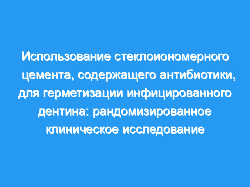 В этом двойном слепом контролируемом клиническом исследовании оценивалась эффективность стеклоиономерного цемента (GIC) с добавлением антибиотиков для герметизации инфицированного дентина при атравматических реставрациях первичного моляра.В исследовании приняли участие 45 детей (45 зубов) в возрасте от 5 до 8 лет, обоих полов, разделенных на две группы: GC (n= 22), где полости были выровнены с помощью обычного GIC (Vidrion F) и GA (n=23), с кариозными полостями облицованы Видрионом F с добавлением по 1% метронидазола, ципрофлоксацина и антибиотика цефаклора.