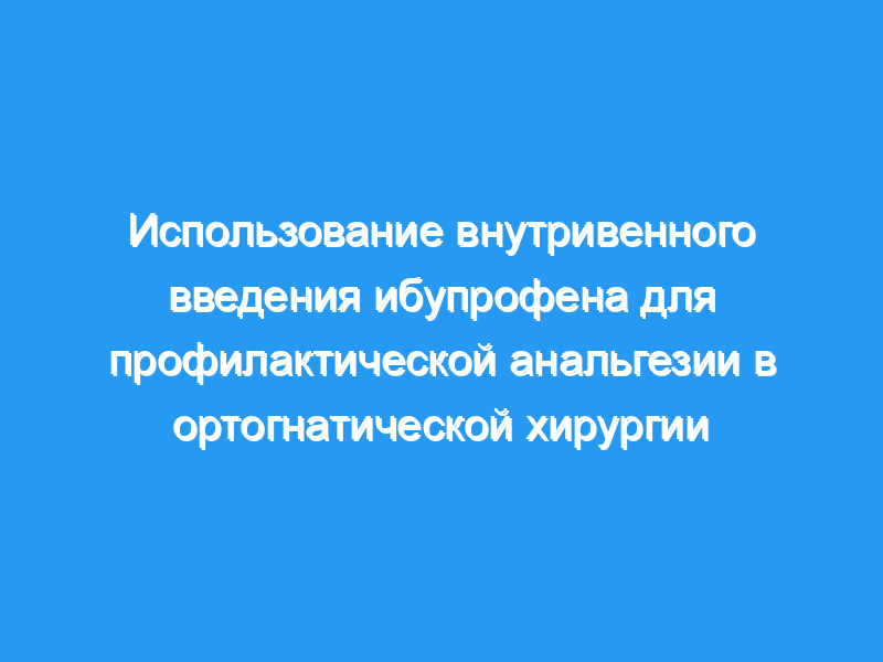 Профилактическая анальгезия направлена на устранение послеоперационной боли, вызванной ноцицептивной и центральной стимуляцией. Целью данного исследования было изучение влияния однократного внутривенного (В/в) введения ибупрофена для профилактической анальгезии на послеоперационное обезболивание в ортогнатической хирургии.