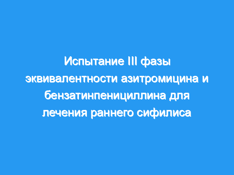 В этом исследовании эффективность азитромицина в дозе 2,0 г, вводимого перорально, была эквивалентна эффективности бензатинового пенициллина G для лечения раннего сифилиса у лиц без ВИЧ-инфекции.
