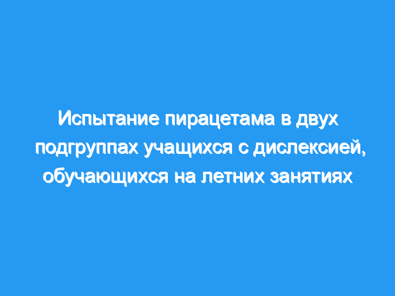 Результаты обсуждаются в связи с результатами предыдущих исследований пирацетама у детей с дислексией.