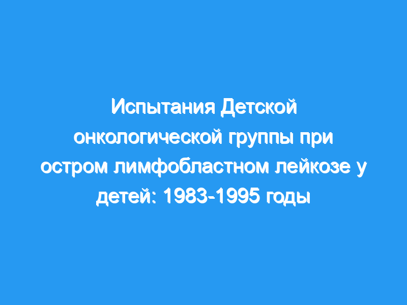 Авторы исследования: P S Gaynon, M E Trigg, N A Heerema, M G Sensel, H N Sather, G D Hammond, W A Bleyer