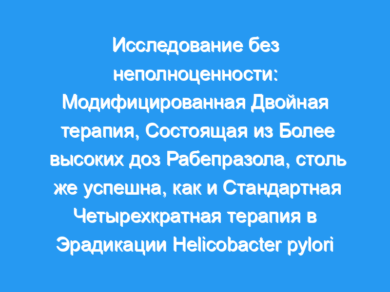 Цель состоит в том, чтобы сравнить высокие дозы рабепразола и амоксициллина, содержащие модифицированную двойную терапию (MDT), с субцитратом висмута, содержащим стандартную четырехкратную терапию (SQT), в качестве лечения эрадикации Helicobacter pylori первой линии с точки зрения эффективности, безопасности и приверженности к лечению.