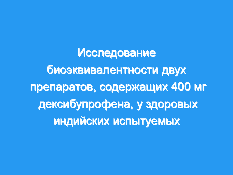 В этом исследовании представлены результаты двухпериодных перекрестных исследований на 24 здоровых индийских мужчинах для оценки биоэквивалентности двух пероральных препаратов, содержащих 400 мг дексибупрофена (CAS 51146-56-6). Также была предпринята попытка изучить фармакокинетику дексибупрофена у местного населения индийского происхождения. Способ: Оба препарата вводили перорально в виде однократной дозы, разделенной периодом вымывания в течение одной недели. Концентрацию дексибупрофена в плазме определяли валидированным методом ВЭЖХ с УФ-детекцией с использованием карбамазепина в качестве внутреннего стандарта. Составы сравнивали, используя параметры площадь под кривой концентрация-время в плазме (AUC(0-t)), площадь под кривой концентрация-время в плазме от нуля до бесконечности (AUC(0-бесконечность)), пиковая концентрация в плазме (C(max)) и время достижения пика концентрация в плазме (t(max)).