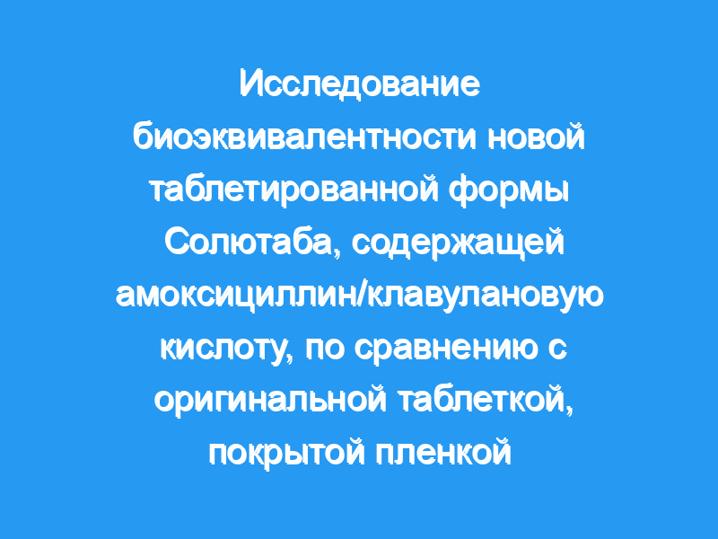 На основании статистических данных, что 3/48 пациентов с крайне низкими уровнями референтного препарата могут рассматриваться как «выбросы», и после исключения этих субъектов»данные статистического анализа, результаты для клавулановой кислоты были в пределах заданного диапазона биоэквивалентности от 0,75 до 1,33. В целом, таблетка амоксициллин/клавулановая кислота Солютаб обеспечивала, по сравнению с контрольной таблеткой, менее изменяющиеся уровни клавулановой кислоты, что обеспечивало более надлежащую защиту доступных амоксициллинов.
