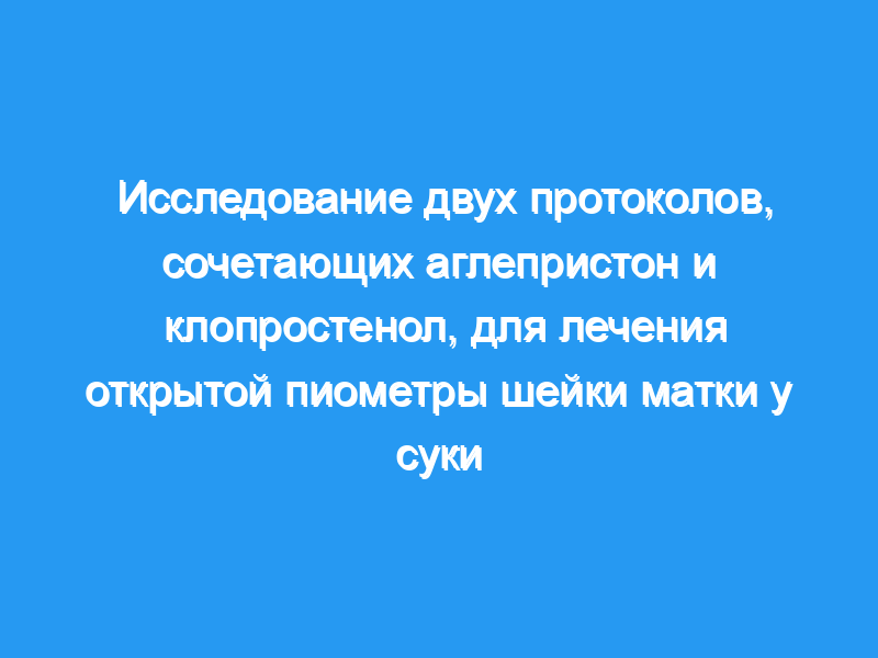 Чтобы сравнить эффективность и безопасность двух протоколов с использованием комбинации аглепристона и клопростенола для лечения открытой пиометры шейки матки у суки и описать профили прогестерона (P4) в сыворотке крови до и во время лечения, 15 сук были случайным образом распределены на две группы лечения: I (n = 8): аглепристон вводили в дозе 10 мг/кг, перорально, в дни 1, 3, 8 и 15 (если не вылечили), в сочетании с клопростенолом в дозе 1 мкг/кг, перорально, в дни 3 и 8, и II (n = 7): получал то же лечение аглепристоном, что и при лечении I, но клопростенолом на 3, 5, 8, 10, 12 и 15-й дни (если не вылечился). Перед началом лечения, а затем на 8, 15 и 29-й дни у всех сук оценивали клинические признаки, побочные эффекты, гемограмму, концентрацию Р4 в сыворотке крови и диаметр матки.