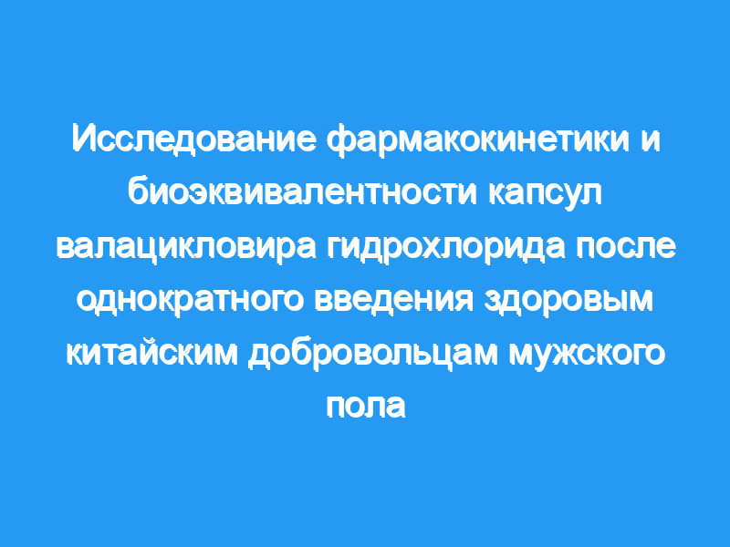 Целью настоящего исследования было сравнение биодоступности валацикловира (CAS 124832-26-4, МНН: валацикловир) из двух капсул валацикловира гидрохлорида (CAS 214832-27-5) (150 мг/капсула в качестве тестируемого препарата и 150 мг/капсула, коммерчески доступная оригинальная капсула препарата в качестве эталонного препарата) в 20 китайских здоровые добровольцы мужского пола в возрасте от 20 до 27 лет. Исследование проводилось в соответствии с открытым рандомизированным однократным слепым 2-сторонним перекрестным исследованием с 7-дневной фазой вымывания.