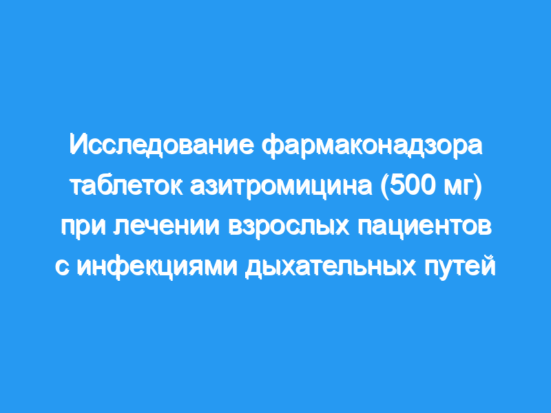 Нашей целью было изучить новую форму азитромицина (таблетки по 500 мг), чтобы оценить переносимость и влияние приема пищи на переносимость, эффективность и соблюдение режима лечения у большого числа пациентов с инфекцией дыхательных путей.