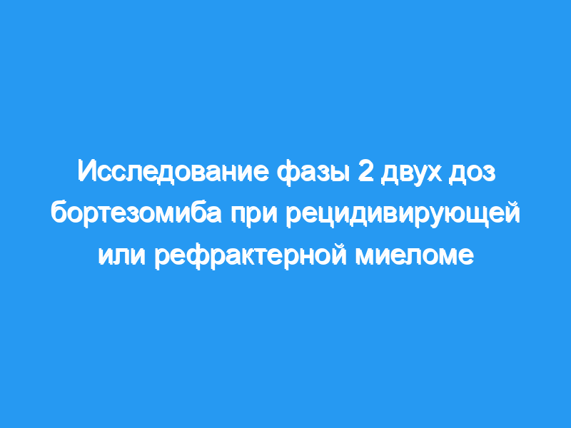 В открытом исследовании фазы 2 нового ингибитора протеасом бортезомиба 54 пациента с множественной миеломой, у которых произошел рецидив или которые были рефрактерны к терапии первой линии, были рандомизированы для внутривенного введения 1,0 или 1,3 мг/м(2) бортезомиба два раза в неделю в течение 2 недель, каждые 3 недели в течение максимум из восьми циклов.