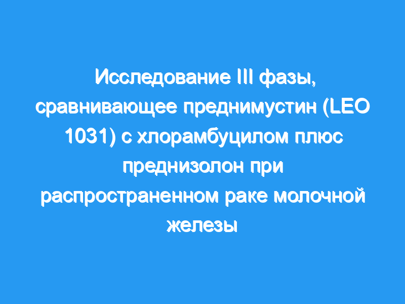 препарат имеет некоторую активность в экспериментальных, а также в человеческих опухолей, включая рак молочной железы чения.р><р>цель данного исследования-сравнить клиническую эффективность и токсичность prednimustine с ее компонентами, плюс хлорамбуцил, преднизолон, и сравнение клинической эффективности и токсичности непрерывного лечения с прерывистой.