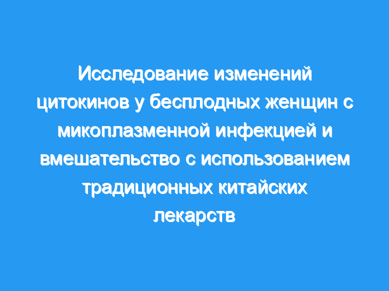 Цитокины (IL-1beta, IL-2, TNF-альфа) в периферической крови и слизистой шейки матки увеличивается у бесплодных женщин с микоплазменной инфекцией, что позволяет предположить, что TCMs может эффективно ингибировать уровни IL-1beta, IL-2, TNF-альфа в периферической крови и IL-1beta, TNF-альфа в слизистой шейки матки. Доказано, что отвар Сяочжи можно использовать для лечения бесплодных женщин с микоплазменной инфекцией.