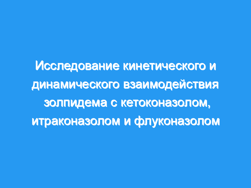 В рандомизированном двойном слепом 5-стороннем перекрестном клиническом фармакокинетико-фармакодинамическом исследовании 12 добровольцев получали (А) золпидем плацебо плюс азол плацебо, (Б) 5 мг золпидема плюс азол плацебо, (В) золпидем плюс кетоконазол, (Г) золпидем плюс итраконазол и (Е) золпидем плюс флуконазол.