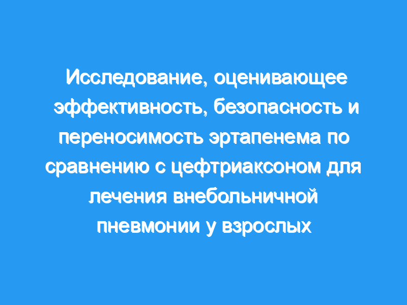 Эти результаты свидетельствуют о том, что терапия эртапенемом и цефтриаксоном имеет аналогичная эффективность и безопасность у госпитализированных пациентов с внебольничной пневмонией.