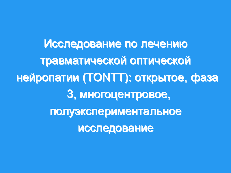 В исследование были включены пациенты TON в возрасте ≥5 лет с интервалом между травмами и лечением ≤3 недель. Последующие визиты были назначены на 1, 2, 3, 7, 14, 30, и по крайней мере через 90 дней после лечения. ЭПО и метилпреднизолон вводили внутривенно каждый день в течение трех дней подряд. Основным показателем результата было изменение наилучшей скорректированной остроты зрения (BCVA). Вторичные исходы включали изменение цветового зрения и относительный афферентный дефект зрачка (RAPD), побочные эффекты и факторы, влияющие на окончательное улучшение зрения.
