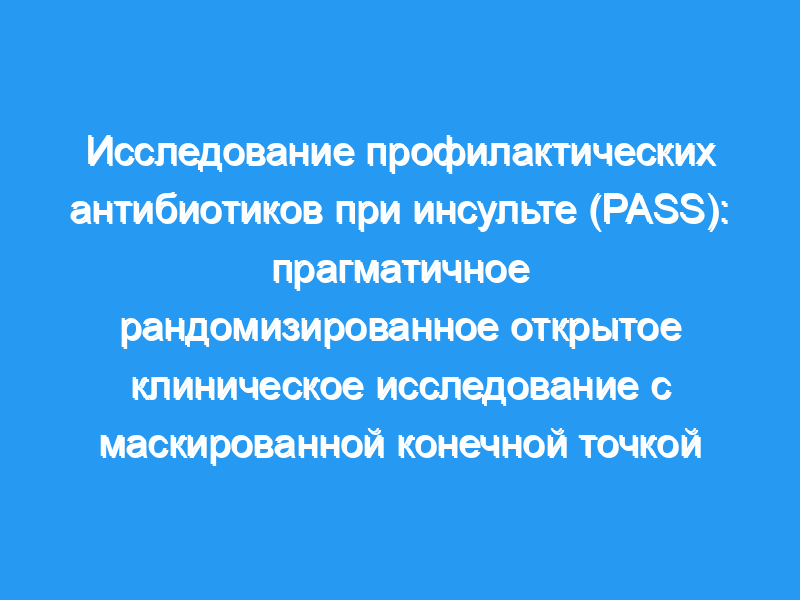У взрослых с острым инсультом инфекции встречаются часто и связаны с неблагоприятным функциональным исходом. В исследовании «Профилактические антибиотики при инсульте» (PASS) мы стремились установить, улучшает ли профилактическая антимикробная терапия цефалоспорином третьего поколения, цефтриаксоном, функциональный исход у пациентов с острым инсультом.