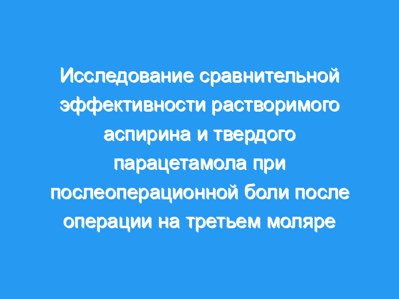 Результаты этого исследования показали, что растворимый аспирин в дозе 900 мг обеспечивает значительную и более быструю анальгезию, чем парацетамол в дозе 1000 мг в раннем послеоперационном периоде после операции на третьем моляре.