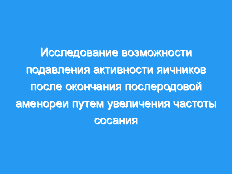 Целью исследования было проверить влияние увеличения частоты грудного вскармливания на функцию яичников после окончания послеродовой аменореи.