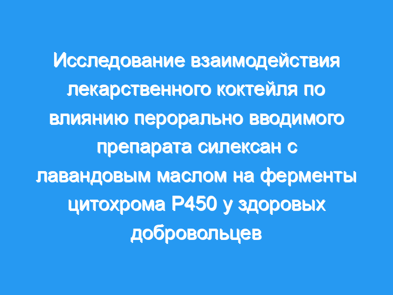 В этом исследовании оценивался потенциал взаимодействия перорального препарата силексан с лавандовым маслом с основными ферментами Р450 (цитохром Р450). Субъекты и методы: Шестнадцать здоровых мужчин или женщин европеоидной расы завершили это двойное слепое рандомизированное 2-кратное перекрестное исследование. Силексан (160 мг) или плацебо вводили один раз в день в течение 11 дней. Кроме того, на 11-й день обоих периодов исследования перорально вводили 150 мг кофеина (CYP1A2), 125 мг толбутамида (CYP2C9), 20 мг омепразола (CYP2C19), 30 мг декстрометорфана-HBr (CYP2D6) и 2 мг мидазолама (CYP3A4). Формальное взаимодействие исключалось, если 90% доверительный интервал (ДИ) для соотношения силексана и плацебо для показателей фенотипирования (первичный: AUC(0-t)) находился в диапазоне 0,70-1,43.