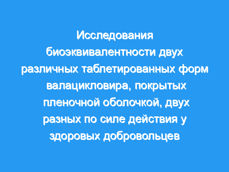 В результатах дисперсионного анализа (ANOVA) для валацикловира были 107,54-124,26% для C(max), 95,45-103,46% для AUC(0-Inf) и 95,53-103,63% для AUC(0-t), тогда как для ацикловира полученные 90% доверительные интервалы составили 103,19-117,02% для C(max), 99,61-106,92% для AUC(0-Inf) и 99,58-106,94% для AUC(0-t). В исследовании с препаратами валацикловира в дозе 1000 мг 90% доверительные интервалы, полученные для валацикловира, составили 93,20-107,35% для C(max), 90,87-96,27% для AUC (0-inf) и 90,87-96,27% для AUC(0-t), тогда как для ацикловира 90% CIs, полученные были 95,98-104,94% для C (max), 97,13-103,94% для AUC (0-inf) и 97,14-104,09% для AUC (0-t). Все 90% доверительные интервалы, полученные для всех оцениваемых параметров, находились в пределах заданного диапазона (80-125%). Основываясь на этих результатах, можно сделать вывод, что оцениваемые препараты являются биоэквивалентными с точки зрения скорости и степени абсорбции.
