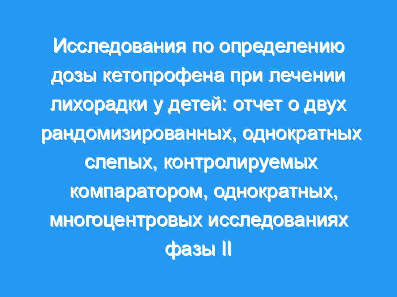 В амбулаторных клиниках первичной медико-санитарной помощи были проведены два проспективных рандомизированных однократных слепых многоцентровых исследования II фазы с однократной дозой, контролируемые компаратором, с четырьмя параллельными группами в каждом исследовании. В исследования были включены дети в возрасте от 6 до 24 месяцев и от 2 до 6 лет с лихорадочным состоянием (ректальная температура тела >, or =39 градусов по Цельсию). Пациентов лечили либо сиропом кетопрофена в дозе 0,25 мг/кг, 0,5 мг/кг или 1 мг/кг, либо питьевым раствором парацетамола в дозе 15 мг/кг, оба вводились перорально. Основным показателем результата было максимальное снижение температуры тела перед повторным приемом препарата по сравнению с исходным уровнем в течение 6-часового периода исследования.