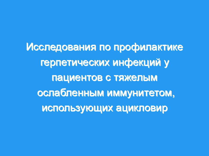 Установлено, что ацикловир эффективен в терапевтическом отношении при инфекциях, вызванных вирусом простого герпеса (ВПГ) и опоясывающим герпесом (ВЗВ), у пациентов с ослабленным иммунитетом [13]. В этой статье представлен обзор наших последующих исследований по профилактике инфекций группы герпеса в группе высокого риска пациентов, страдающих острым лейкозом.