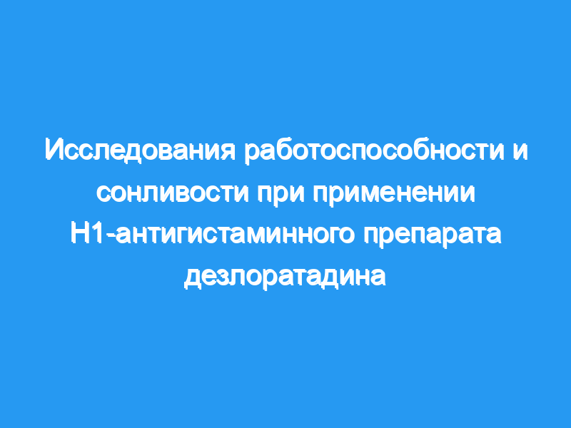 Целью этого исследования было установить, не влияет ли Н1-антигистаминный дезлоратадин (5 мг), активный метаболит лоратадина, на работоспособность и сонливость. Метод: Влияние дезлоратадина (5 мг) на психомоторную работоспособность, задержки дневного сна, субъективную сонливость и память изучали у девяти здоровых добровольцев (четверо мужчин, пять женщин) в возрасте от 20 до 39 лет (среднее значение 28,2). Оценки проводились за 1,0 ч до приема и от 0,5 до 8,0 ч после приема. Исследование было плацебо-контролируемым и двойным слепым с перекрестным дизайном, с использованием прометазина (25 мг) в качестве активного контроля.