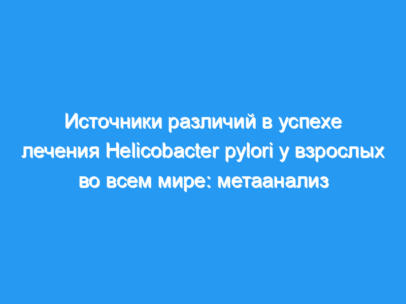 В целом, лечение было менее успешным при более короткой продолжительности лечения и двойной лекарственной терапии (по сравнению с тройной или четырехкратной лекарственной терапией). Что касается схем лечения на основе нитроимидазола, то лечение было менее успешным в группах населения с частой детской инфекцией H. pylori или резистентностью к метронидазолу и более успешным в северо-Восточной Азии. Наиболее успешными были более длительные методы лечения, не связанные с нитроимидазолом, и те, которые были получены в менее поздних сообщениях. Некоторые однонедельные схемы лечения (нитроимидазол/тетрациклин/висмут, ранитидин цитрат висмута/амоксициллин/кларитромицин и кларитромицин/амоксициллин/ингибитор протонной помпы) были весьма успешными в северо-Восточной Азии, независимо от резистентности к метронидазолу. Наиболее успешная схема лечения в популяциях с высокой распространенностью резистентности к метрондиазолу и частыми инфекциями у детей (метронидазол/фуразолидон/амоксициллин) устранила менее 70% инфекций.