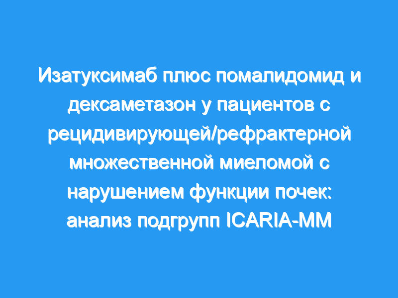 В рандомизированном исследовании 3-й фазы ICARIA-MM изучался изатуксимаб (Isa) с помалидомидом и дексаметазоном (Pd) в сравнении с Pd у пациентов с рецидивирующей/рефрактерной множественной миеломой и ≥2 предшествующей линией.