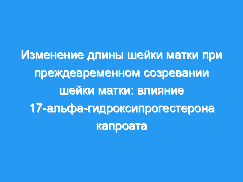 Целью этого исследования было оценить, влияет ли лечение 17-альфа-гидроксипрогестерона капроатом (17Р) на изменения длины шейки матки. План исследования: В исследование были включены женщины с одноплодной беременностью в возрасте от 25 до 33 + 6 недель беременности, которые были госпитализированы по поводу преждевременных родов. Пациенты с разрывом плодных оболочек и/или признаками хориоамнионита были исключены. Шестьдесят недоставленных пациенток были случайным образом распределены либо для наблюдения, либо для приема 341 мг 17P внутримышечно два раза в неделю до 36-й недели беременности. Длину шейки матки измеряли с помощью трансвагинального ультразвукового сканирования при выписке и на 7-й и 21-й день после выписки. Статистические сравнения проводились с помощью дисперсионного анализа и критерия хи-квадрат.