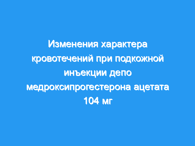 Каждое исследование показало снижение частоты нерегулярных кровотечений и усиление аменореи при продолжении применения DMPA-SC 104. Частота аменореи на 12-м месяце (52-64% во всех исследованиях) и 24-м месяце (71% в 2-летнем исследовании) была сопоставима с показателями, первоначально зарегистрированными для DMPA-IM. Изменения в характере кровотечений не выявили последовательных различий в зависимости от возраста или ИМТ. Процент пациентов, переходящих от кровотечения и/или кровянистых выделений к аменорее, увеличивался с каждой последующей инъекцией.