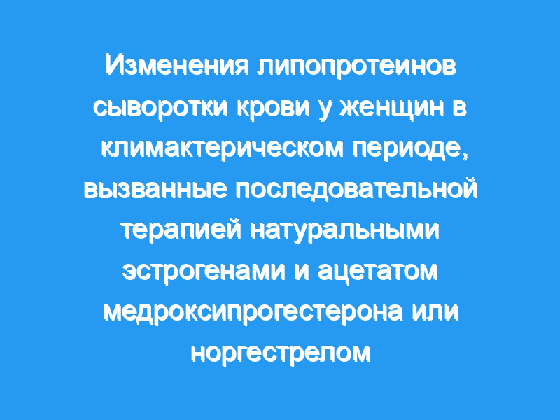 Циклическое добавление медроксипрогестерона ацетата к заместительной терапии эстрогенами не оказывает отрицательного влияния на уровень липопротеинов в сыворотке крови и может быть предпочтительнее норгестрела.