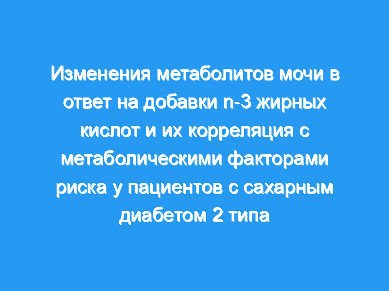 Целью настоящего исследования было изучить влияние добавок n-3 жирных кислот на профилирование метаболитов мочи и их корреляцию с метаболическими факторами риска у китайских пациентов с СД2.