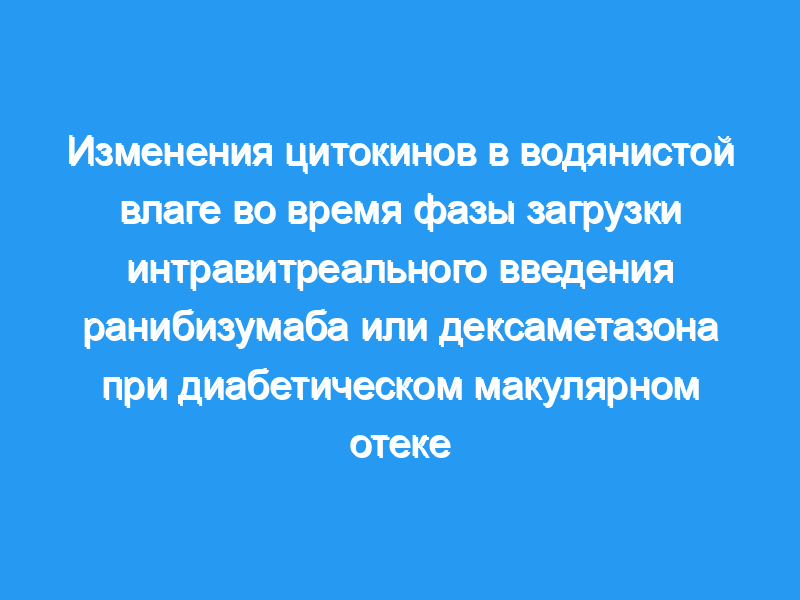В исследование были включены 18 глаз 18 пациентов. В группе имплантатов с дексаметазоном растворимая молекула межклеточной адгезии 1 (sICAM-1) (недели 2 и 8), CXCL9/монокин, индуцированный гамма-интерфероном (MIG) (недели 2 и 8), растворимый белок адгезии сосудистых клеток 1 (sVCAM-1) (недели 2 и 8) и химиотерапия моноцитов-уровни белка-аттрактанта 1 (MCP-1) (неделя 2) были значительно снижены по сравнению с исходным уровнем. В группе ранибизумаба уровни плацентарного фактора роста (PIGF) (2-я неделя) и фактора роста эндотелия сосудов (VEGF) (2 и 8-я недели) были значительно снижены по сравнению с исходным уровнем. В группе Ozurdex ни в какие моменты времени не наблюдалось существенных изменений в центральной толщине сетчатки (CRT) или в исследовании диабетической ретинопатии раннего лечения (ETDRS) с наилучшей коррекцией остроты зрения (BCVA). Показатели ETDRS значительно увеличились на 20-й неделе (84,88 ± 8,88 букв) по сравнению с исходным уровнем (74,78 ± 14,85 букв), а CRT значительно снизился на 4-й неделе (381,00 ± 114,64 мкм) по сравнению с исходным уровнем (440 ± 144 мкм) в группе Lucentis.