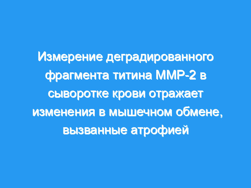 В этом исследовании мы стремились определить, может ли фрагмент пептида Титина служить клиническим биомаркером изменений мышечной массы.