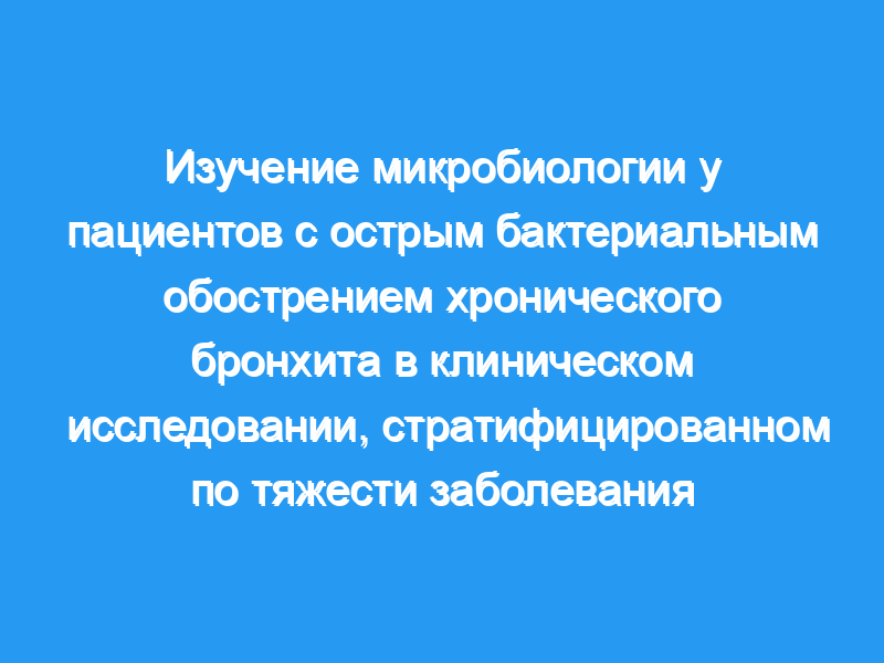 Изучить микробиологию входа в исследование у пациентов, стратифицированных по тяжести заболевания, в клиническом исследовании при остром бактериальном обострении хронического бронхита (ABECB).