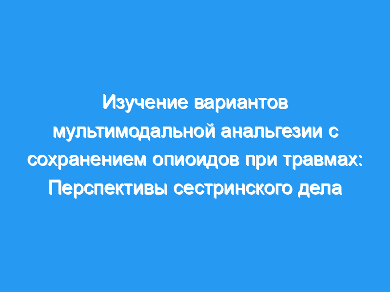 Медсестры играют ключевую роль во всестороннем обследовании пациентов, назначении ориентированных на пациента опиоидных препаратов.- щадящая, мультимодальная анальгезия при травмах и мониторинг по соображениям безопасности.