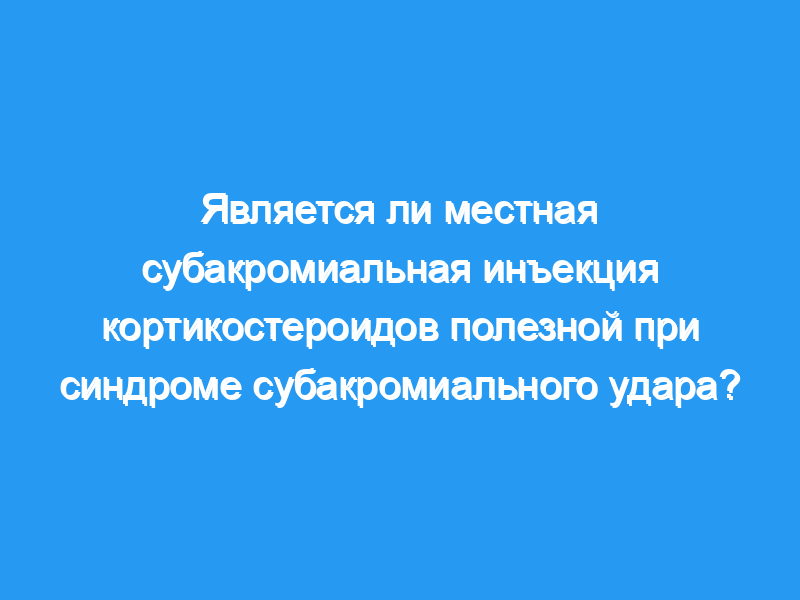 Инъекция субакромиальных кортикостероидов является одним из наиболее часто используемых методов лечения синдрома субакромиального удара (SIS), несмотря на противоречивые сообщения об эффективности.
